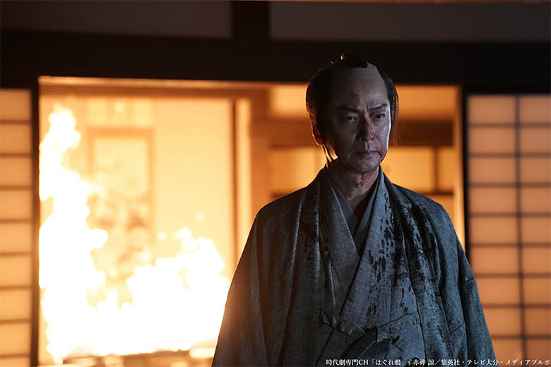 次郎丸は正体を隠すため山川才次郎と名前を変え、剣術指南役として竹田の地に足を踏み入れる。もちろん目的は仇討ち。そこで才次郎は叔父の巧佐衛門が周囲から"はぐれ鴉"というあだ名で呼ばれていることを耳にする。城主でありながら、みすぼらしい屋敷に住んで、山に入って泥にまみれる作業も自らしているという。才次郎に藩内を案内する若き藩士・小津主水(森田甘路)、才次郎の過去を知り、手を組まないかと持ちかける商人・篤丸(マギー)、竹田藩の徒目付・前浜太治郎(和田聰宏)。様々な人間が才次郎の周囲に出現し、14年前の事件の謎が深まる中、復讐のためだけに生きてきた青年を神尾は相手を射るような視線や意志だけを伝える短い台詞でクールに表現している。印象的なのは巧佐衛門を紹介された直後、初対面のように話す叔父への怒りや悲しみを制御できず、豪快に水しぶきを上げる滝に向かってひとり剣を振るうシーンだ。雄叫びを上げる神尾の気迫に満ちた顔は役者としての新たな一面を感じさせる。